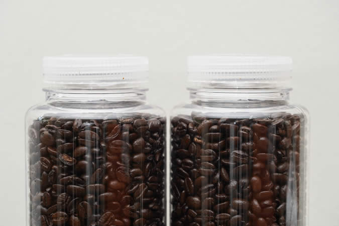 ただ、すぐに飲み切る場合はこれでもよいのですが、先ほども申し上げた通り透明のビンは光を通し、また中から酸素を抜くことができませんので、コーヒーの保存容器としては適したものではありません。