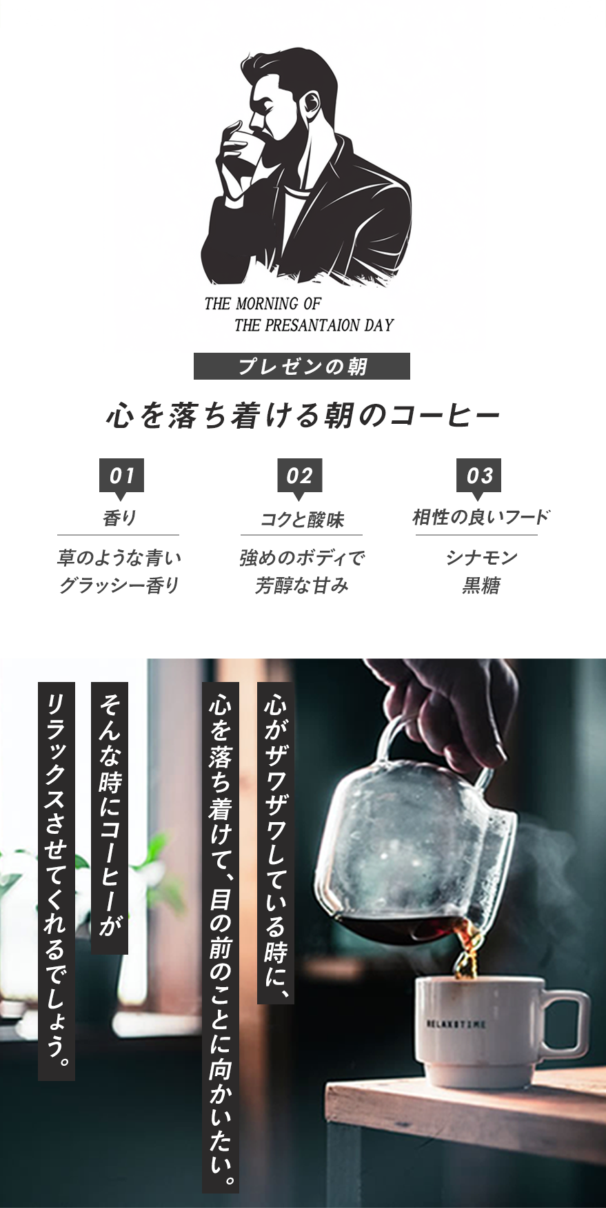 「プレゼンの朝」はそんな時に飲んでほしいコーヒーです。